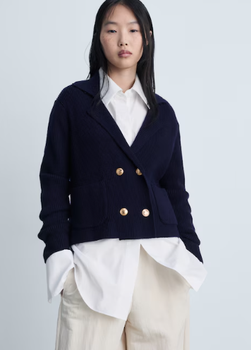 Double-breasted knitted jacket