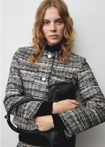 Tweed jacket with metal buttons