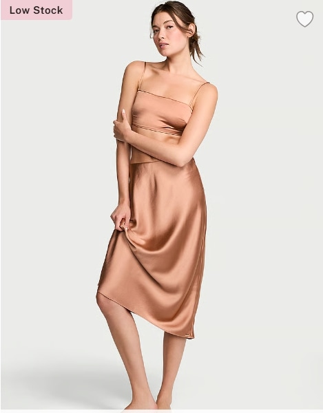 Victorias Secret Luxe Satin Crop Bandeau Top & Slip Skirt Set