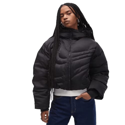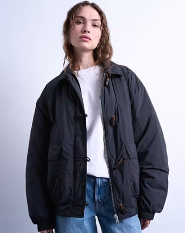 Topshop oversized padded hybrid toggle bomber jacket in black