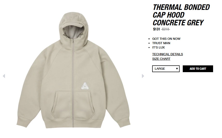 THERMAL BONDED CAP HOOD CONCRETE GREY