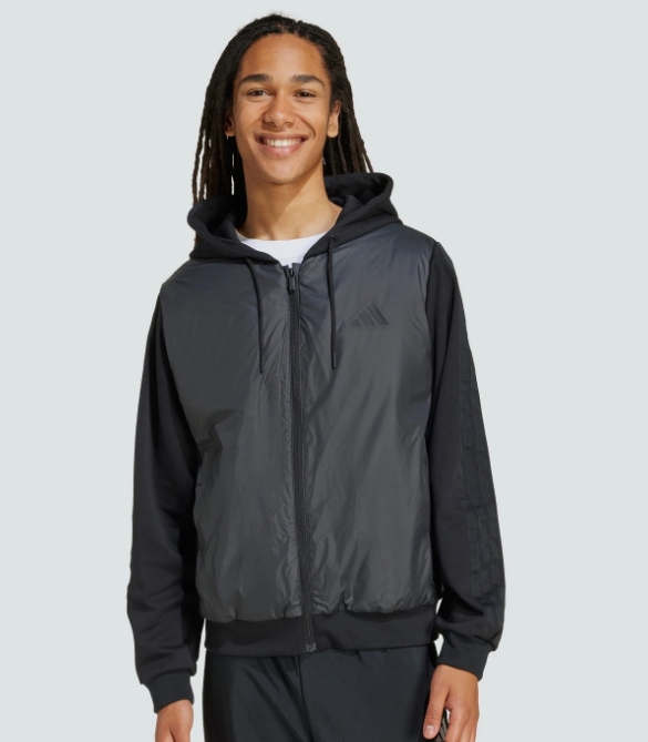 adidas men Essentials CLIMAWARM 3-Stripes Insulated Hooded Hybrid Jacket