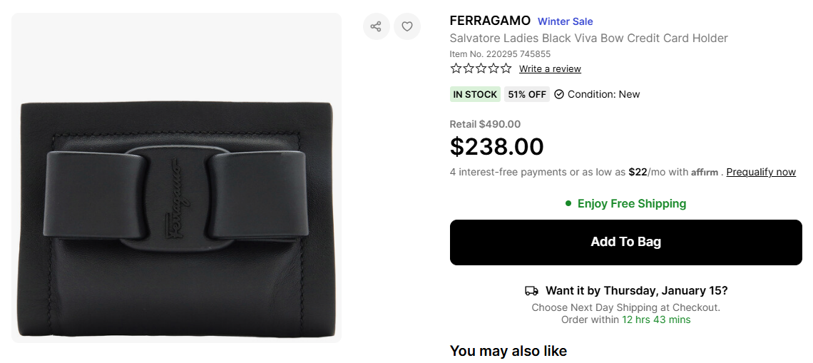 Ferragamo Salvatore Ladies Black Viva Bow Credit Card Holder