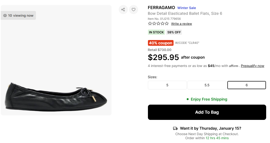 Ferragamo Bow Detail Elasticated Ballet Flats, Size 6