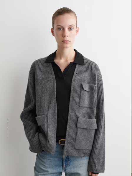 RIBBED MERINO WOOL UTILITY CARDIGAN