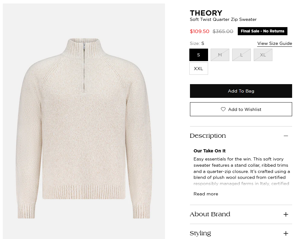 A.K. Rikk′s) 최대 70% 세일! 띠어리 소프트 트위스트 쿼터 집 스웨터 $109.50