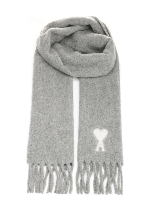 AMI Paris Logo Detailed Fringed-Hem Scarf