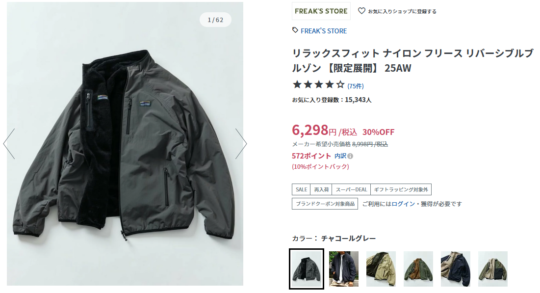 FREAK\'S STORE リラックスフィット ナイロン フリース リバーシブルブルゾン