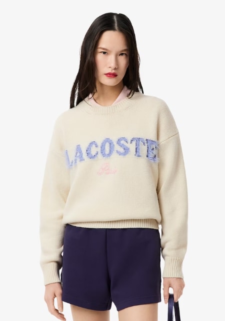 Womens Intarsia Branded Wool Sweater