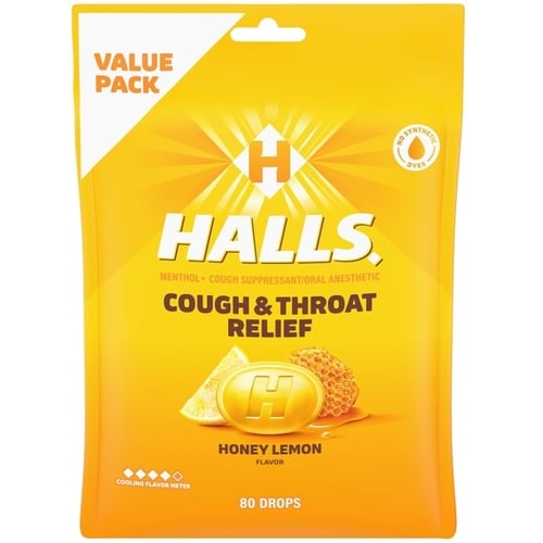 HALLS Relief Honey Lemon Cough Drops, Bulk Cough Drops, 250 Drops
