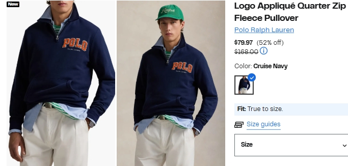 로고 아플리케 쿼터집 프리스 풀오버 $79.97