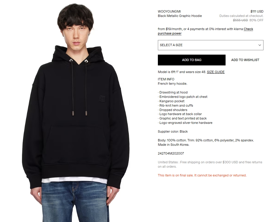 WOOYOUNGMI Black Metallic Graphic Hoodie